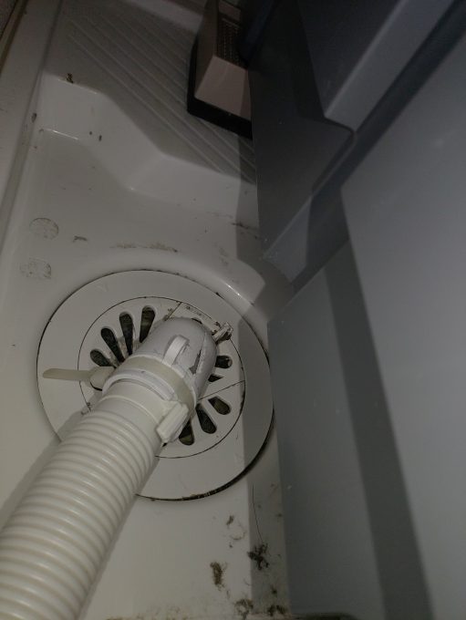 ドラム式洗濯機が大きなサイズで排水口が見えにくく、掃除も手が届かず難しいとのことで、詰まりの原因予防でトラップ排水清掃も同時に行ないました。