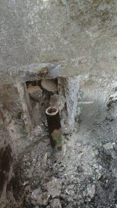 給水管が壁沿いに設置してあり、作業スペースがなかったため、壁に少し穴を開けさせていただき止水作業を行いました。
