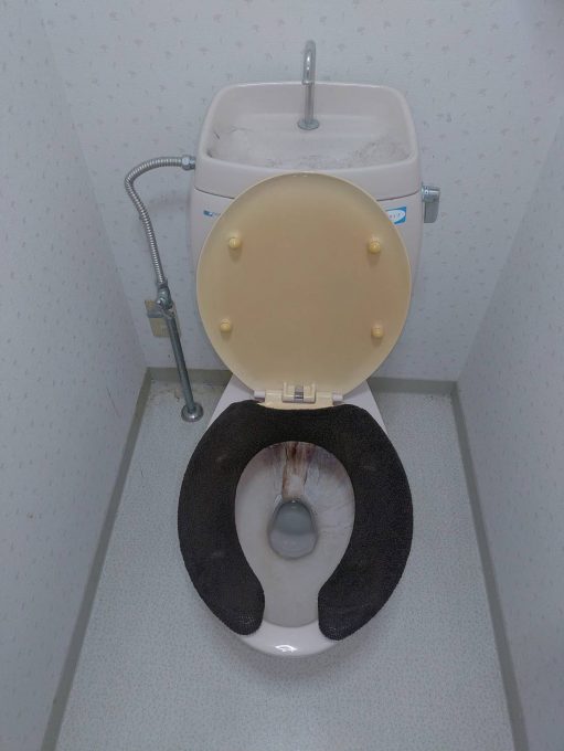 今回トラブルのあった現場は2階のトイレで、30年使用しているので汚れも落ちにくく水漏れもあるため、交換をご希望いただきました。