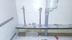 気がついたら流し台の下からも水がでてきたとのことで、今回は蛇口本体と流し台の下にある止水栓2箇所(水・お湯)を交換することになりました。