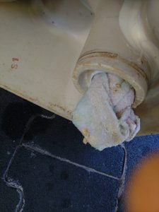 少し水を流して確認してみるとすぐに水が溜まる状態だったため、トイレ便器内の異物除去をするため脱着作業を行いました。