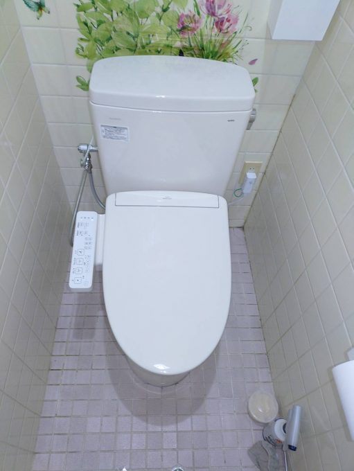 トイレ交換をど依頼いただきました。新しくトイレはメンテナンスしやすいものが良いとご希望をいただき、袖付きのリモコンで操作しやすいものを取り付けさせていただきました。