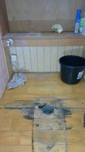 トイレ自体もぐらついていたので、外してみると便器内で水漏れを起こしており、床が腐っていました。