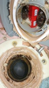 トイレを外してみると一目瞭然!子供のオモチャが引っかかっていました。