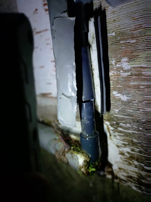 寒波による凍結の影響を受けたためか、水道管が継手から抜けていました。既存の位置へ繋ぎ直しと保温材が傷んでいたため、巻き直しをさせて頂くことになりました。