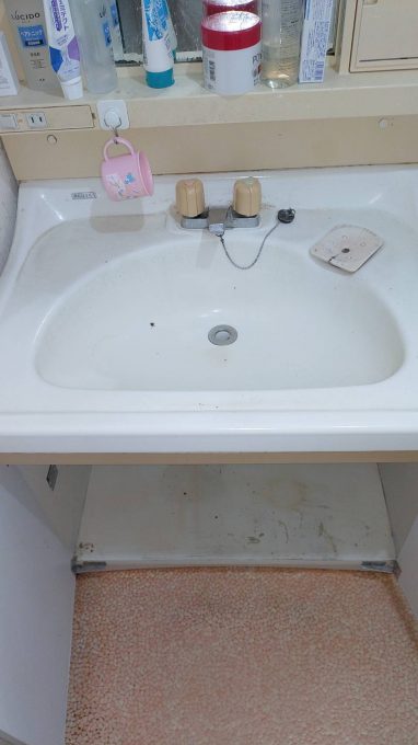 30年使用した洗面台ですが、しっかり蛇口を回さなければ水が止まらず、下の排水は水漏れがあり床板がかなり劣化していました。