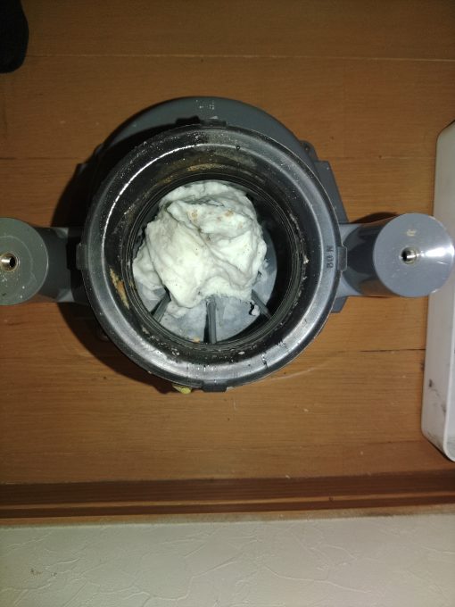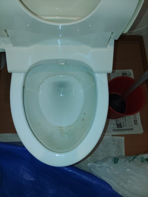 さっそくトイレを外していきます。慎重に便器を外してみましたら、排水出口にパッドがございました。無事に取り出し、作業終了です。