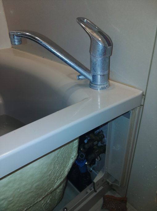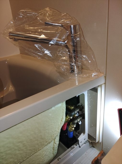 浴室蛇口水漏れ、浴槽下から水漏れの音がするとの事で、点検致しました。点検の結果、蛇口ホースからの水漏れでした。