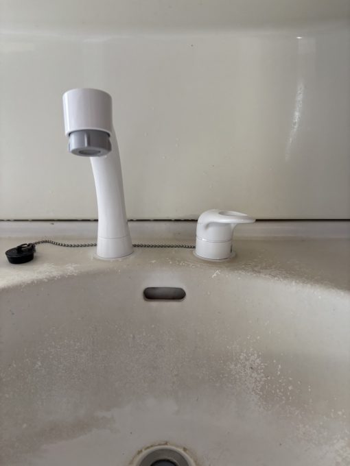 今回は床、化粧台を今後も痛めず安心して使用していくため、蛇口交換を行いました。